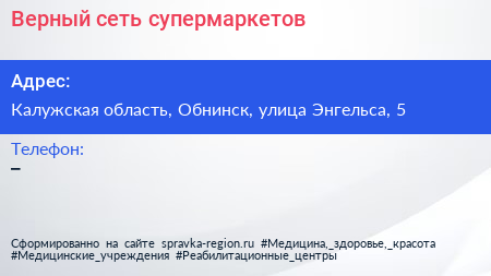 Верный, сеть супермаркетов по адресу Калужская область, Обнинск, улица Энгельса, 5 в дальнейшем Организация, размещена в следующих категориях: