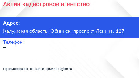 Актив, кадастровое агентство по адресу Калужская область, Обнинск, проспект Ленина, 127 в дальнейшем Организация, размещена в следующих категориях: