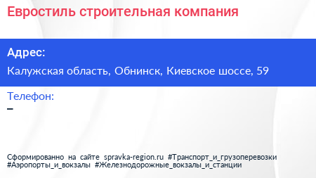 Евростиль, строительная компания по адресу Калужская область, Обнинск, Киевское шоссе, 59 в дальнейшем Организация, размещена в следующих категориях: