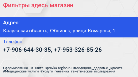 Фильтры здесь!, магазин по адресу Калужская область, Обнинск, улица Комарова, 1 в дальнейшем Организация, размещена в следующих категориях: