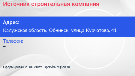 Источник, строительная компания по адресу Калужская область, Обнинск, улица Курчатова, 41 в дальнейшем Организация, размещена в следующих категориях:
