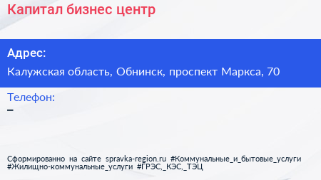 Капитал, бизнес-центр по адресу Калужская область, Обнинск, проспект Маркса, 70 в дальнейшем Организация, размещена в следующих категориях: