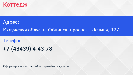Коттедж по адресу Калужская область, Обнинск, проспект Ленина, 127 в дальнейшем Организация, размещена в следующих категориях: