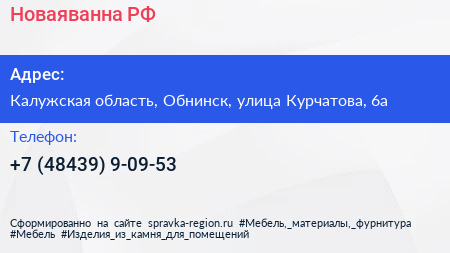 Новаяванна.РФ по адресу Калужская область, Обнинск, улица Курчатова, 6а в дальнейшем Организация, размещена в следующих категориях:
