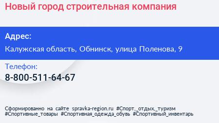Новый город, строительная компания по адресу Калужская область, Обнинск, улица Поленова, 9 в дальнейшем Организация, размещена в следующих категориях: