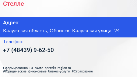 Стеллс по адресу Калужская область, Обнинск, Калужская улица, 24 в дальнейшем Организация, размещена в следующих категориях: