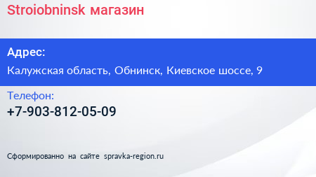 Stroiobninsk, магазин по адресу Калужская область, Обнинск, Киевское шоссе, 9 в дальнейшем Организация, размещена в следующих категориях: