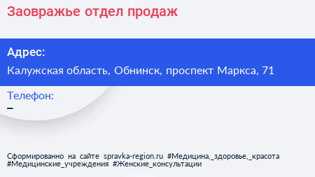 Заовражье, отдел продаж по адресу Калужская область, Обнинск, проспект Маркса, 71 в дальнейшем Организация, размещена в следующих категориях: