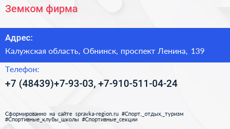 Земком, фирма по адресу Калужская область, Обнинск, проспект Ленина, 139 в дальнейшем Организация, размещена в следующих категориях: