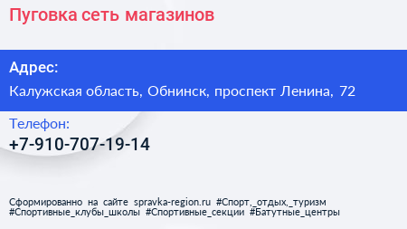 Пуговка, сеть магазинов по адресу Калужская область, Обнинск, проспект Ленина, 72 в дальнейшем Организация, размещена в следующих категориях: