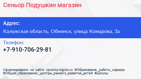 Сеньор Подушкин, магазин по адресу Калужская область, Обнинск, улица Комарова, 3а в дальнейшем Организация, размещена в следующих категориях: