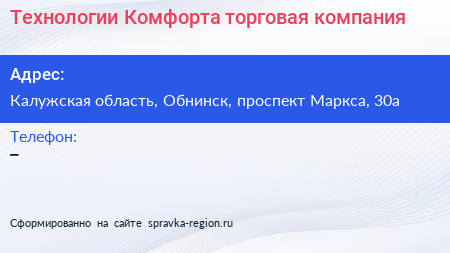 Технологии Комфорта, торговая компания по адресу Калужская область, Обнинск, проспект Маркса, 30а в дальнейшем Организация, размещена в следующих категориях: