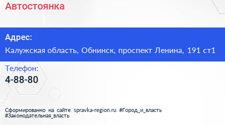 Автостоянка по адресу Калужская область, Обнинск, проспект Ленина, 191 ст1 в дальнейшем Организация, размещена в следующих категориях: