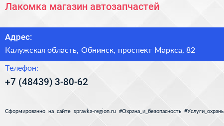 Лакомка, магазин автозапчастей по адресу Калужская область, Обнинск, проспект Маркса, 82 в дальнейшем Организация, размещена в следующих категориях: