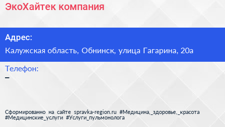 ЭкоХайтек, компания по адресу Калужская область, Обнинск, улица Гагарина, 20а в дальнейшем Организация, размещена в следующих категориях:
