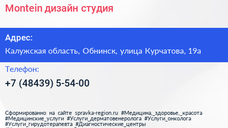 Montein, дизайн-студия по адресу Калужская область, Обнинск, улица Курчатова, 19а в дальнейшем Организация, размещена в следующих категориях: