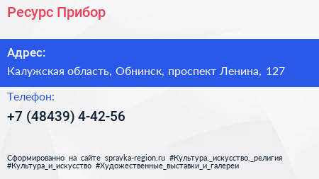 Ресурс Прибор по адресу Калужская область, Обнинск, проспект Ленина, 127 в дальнейшем Организация, размещена в следующих категориях: