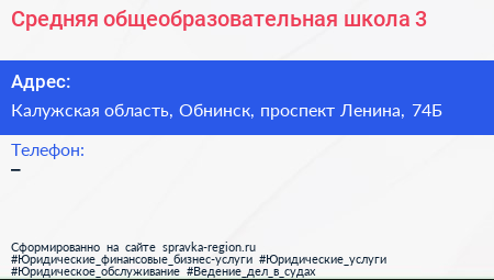 Средняя общеобразовательная школа №3 по адресу Калужская область, Обнинск, проспект Ленина, 74Б в дальнейшем Организация, размещена в следующих категориях:
