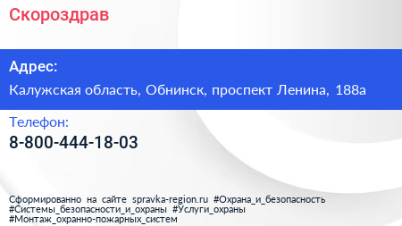 Скороздрав по адресу Калужская область, Обнинск, проспект Ленина, 188а в дальнейшем Организация, размещена в следующих категориях: