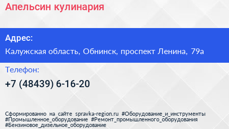Апельсин, кулинария по адресу Калужская область, Обнинск, проспект Ленина, 79а в дальнейшем Организация, размещена в следующих категориях:
