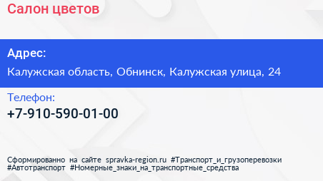 Салон цветов по адресу Калужская область, Обнинск, Калужская улица, 24 в дальнейшем Организация, размещена в следующих категориях:
