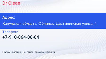Dr.Clean по адресу Калужская область, Обнинск, Долгининская улица, 4 в дальнейшем Организация, размещена в следующих категориях: