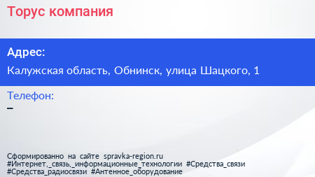 Торус, компания по адресу Калужская область, Обнинск, улица Шацкого, 1 в дальнейшем Организация, размещена в следующих категориях: