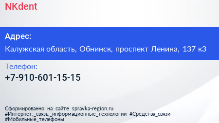 NKdent по адресу Калужская область, Обнинск, проспект Ленина, 137 к3 в дальнейшем Организация, размещена в следующих категориях: