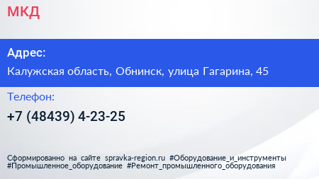 Адрес: Калужская область, Обнинск, Киевское шоссе, 33а