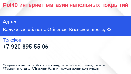 Pol40, интернет-магазин напольных покрытий по адресу Калужская область, Обнинск, Киевское шоссе, 33 в дальнейшем Организация, размещена в следующих категориях: