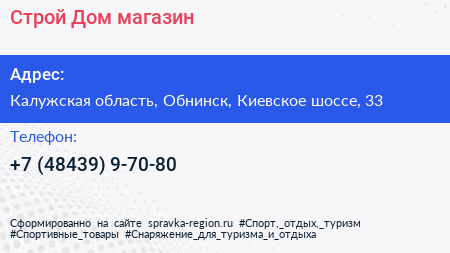 Строй Дом, магазин по адресу Калужская область, Обнинск, Киевское шоссе, 33 в дальнейшем Организация, размещена в следующих категориях: