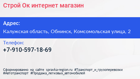 Строй-Ок, интернет-магазин по адресу Калужская область, Обнинск, Комсомольская улица, 2 в дальнейшем Организация, размещена в следующих категориях: