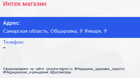 Интек, магазин по адресу Самарская область, Обшаровка, 9 Января, 9 в дальнейшем Организация, размещена в следующих категориях: