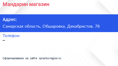 Мандарин, магазин по адресу Самарская область, Обшаровка, Декабристов, 78 в дальнейшем Организация, размещена в следующих категориях: