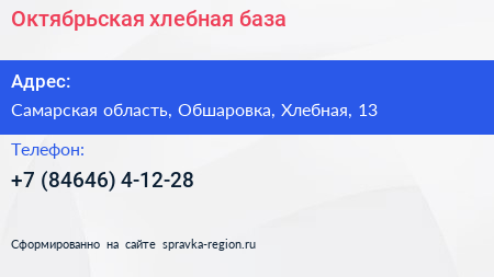 Октябрьская хлебная база по адресу Самарская область, Обшаровка, Хлебная, 13 в дальнейшем Организация, размещена в следующих категориях: