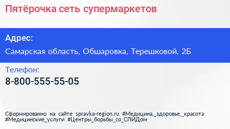 Пятёрочка, сеть супермаркетов по адресу Самарская область, Обшаровка, Терешковой, 2Б в дальнейшем Организация, размещена в следующих категориях: