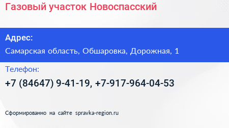 Газовый участок Новоспасский по адресу Самарская область, Обшаровка, Дорожная, 1 в дальнейшем Организация, размещена в следующих категориях: