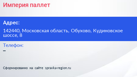 Империя паллет по адресу 142440, Московская область, Обухово, Кудиновское шоссе, 8 в дальнейшем Организация, размещена в следующих категориях: