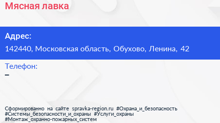 Мясная лавка по адресу 142440, Московская область, Обухово, Ленина, 42 в дальнейшем Организация, размещена в следующих категориях: