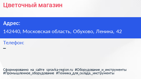 Цветочный магазин по адресу 142440, Московская область, Обухово, Ленина, 42 в дальнейшем Организация, размещена в следующих категориях: