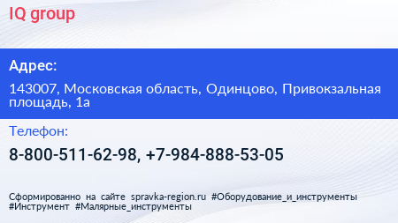 IQ group по адресу 143007, Московская область, Одинцово, Привокзальная площадь, 1а в дальнейшем Организация, размещена в следующих категориях: