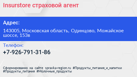 Insurstore, страховой агент по адресу 143005, Московская область, Одинцово, Можайское шоссе, 153в в дальнейшем Организация, размещена в следующих категориях: