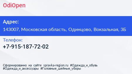 OdiOpen по адресу 143007, Московская область, Одинцово, Вокзальная, 3Б в дальнейшем Организация, размещена в следующих категориях: