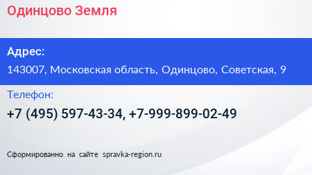 Одинцово-Земля по адресу 143007, Московская область, Одинцово, Советская, 9 в дальнейшем Организация, размещена в следующих категориях: