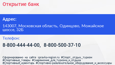 Открытие, банк по адресу 143007, Московская область, Одинцово, Можайское шоссе, 32Б в дальнейшем Организация, размещена в следующих категориях: