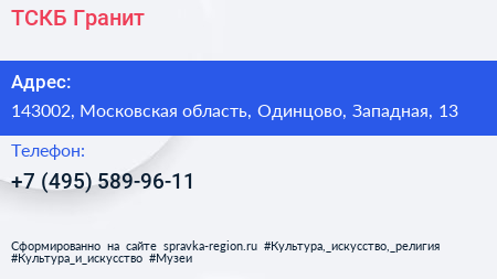 ТСКБ-Гранит по адресу 143002, Московская область, Одинцово, Западная, 13 в дальнейшем Организация, размещена в следующих категориях: