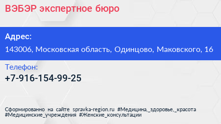 ВЭБЭР, экспертное бюро по адресу 143006, Московская область, Одинцово, Маковского, 16 в дальнейшем Организация, размещена в следующих категориях: