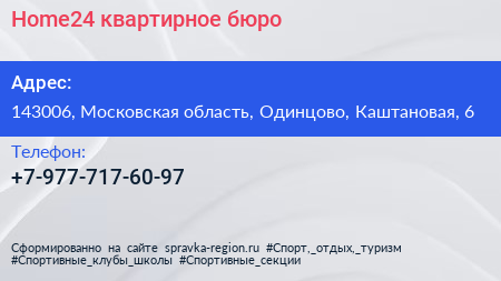 Home24, квартирное бюро по адресу 143006, Московская область, Одинцово, Каштановая, 6 в дальнейшем Организация, размещена в следующих категориях:
