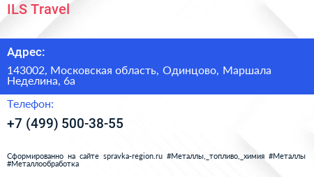 ILS-Travel по адресу 143002, Московская область, Одинцово, Маршала Неделина, 6а в дальнейшем Организация, размещена в следующих категориях: