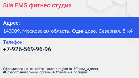 Sila EMS, фитнес-студия по адресу 143009, Московская область, Одинцово, Северная, 5 к4 в дальнейшем Организация, размещена в следующих категориях: